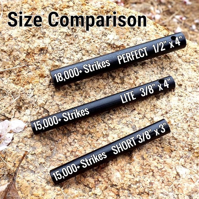 - MORE STRIKES UP TO 15,000 - FERROFIRE branded premium ferro rods are second to none with its stable quality, higher ignition rate, less smoke, each FERROFIRE ferro rod is perfect fire starter for bushcraft, hiking, survival, emergency, camping, fishing and prep purpose.