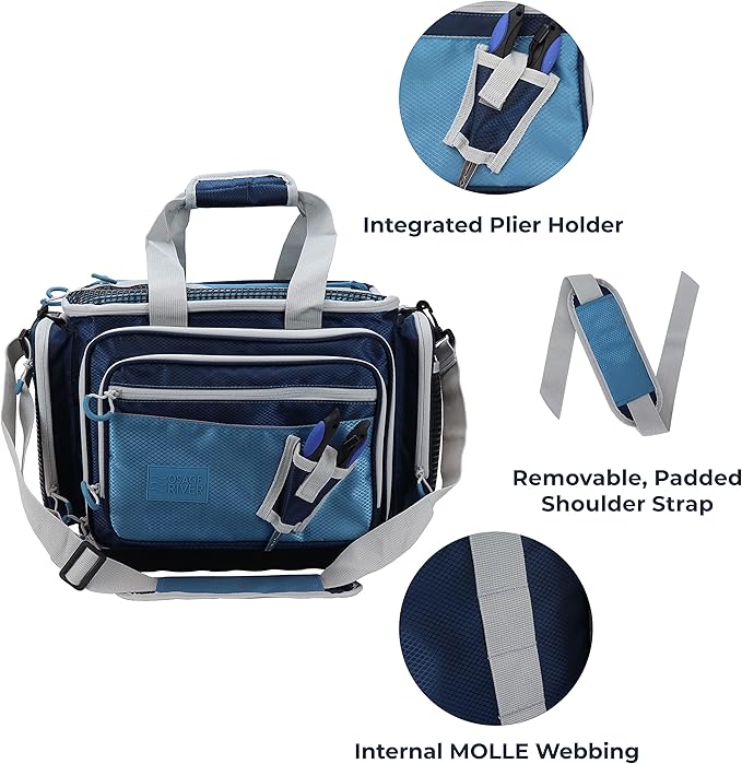 OSAGE RIVER Fishing Tackle Bag, Saltwater Fishing Gear Bag, Tackle Box Organizer with Waterproof Non-Slip Bottom, Padded Shoulder Strap, and Fishing Pliers, Fishing Gifts for Men