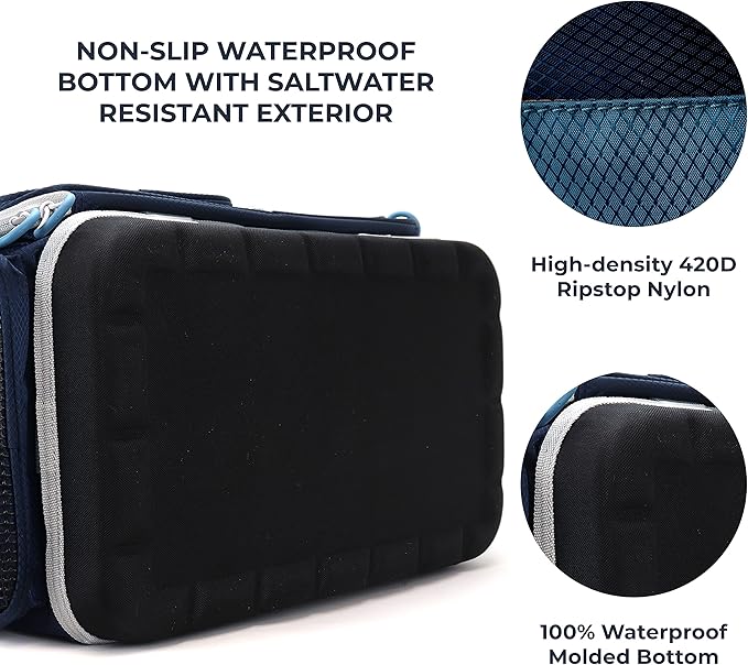 • WATER RESISTANT PACK - The fishing dry bag is made with industry-leading 420D ripstop nylon for exceptional performance. The molded, waterproof bottom repels water and will keep your fishing gear protected no matter the terrain
