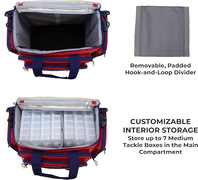 - COMFORTABLE - The removable padded shoulder strap offers comfort when carrying the large fishing tackle bag. Use the padded carry handle when transporting the saltwater tackle bag during short distances