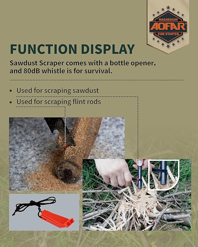 - Multi-function Scraper—Sawdust Scraper comes with a bottle opener, which is used for scraping sawdust. Flint Scraper is strong and sharp, which is used for scraping flint rods