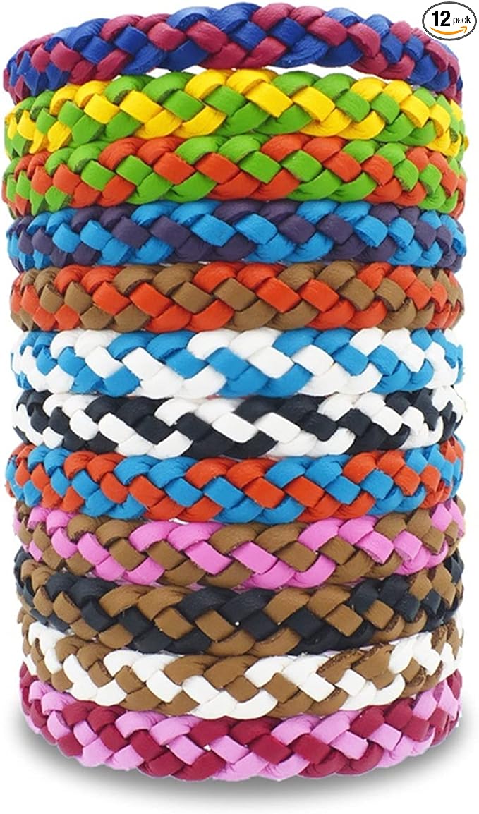 12 Pack Mosquito Repellent Bracelets, Individually Wrapped PU Leather Mixed Color Insect Bug Repellent Wrist Bands for Kids Adults Outdoor Camping Fishing Traveling