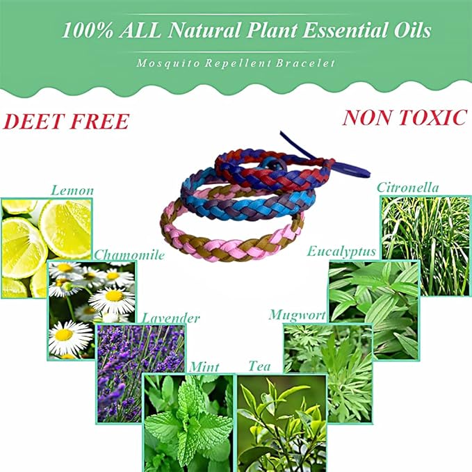 - NATURAL & DEET-FREE - Non-toxic and safe to use against mosquitoes, bugs and annoying insects as our bracelets have Citronella, Lemongrass and Geraniol Essential Oils. Deet-free and safe for children and baby.