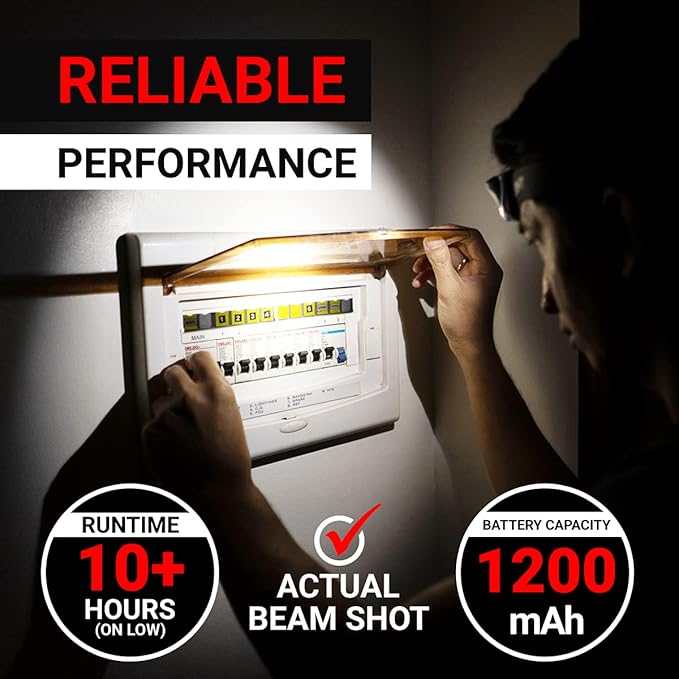 - Pivoting Head and 7 Modes - This 45 degree adjustable headlight gives you the freedom to direct light exactly where you need it - even in tight spaces. Quickly choose from 7 lighting modes. ( White Beam: Low, Medium, High, Strobe I Red Beam: Low, SOS, Strobe)