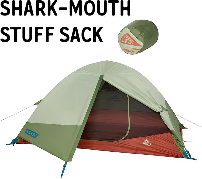 - BACKCOUNTRY CAMPING IN COMFORT: Easy set up with Kelty Quick Corners, lightweight pressfit aluminum poles, pre-attached guylines (no more shoe lacing), and intuitive shark mouth stuff sack that actually fits it all with ease