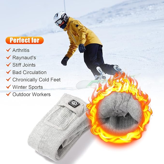 - 【Suitable for Winter Outdoors】Over the calf heated warmer socks are friendly with your ski boots; Coolmax, elastic, and Spandex material provides premium insulation performance while being midweight thickness and soft; the battery heated long socks are perfect for hunting, camping, skiing, skating, snowboarding, fishing, hiking, walking dogs, motorcycle, riding, office or outdoor working, etc.