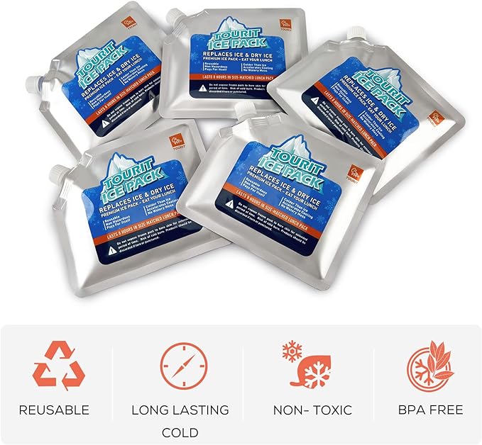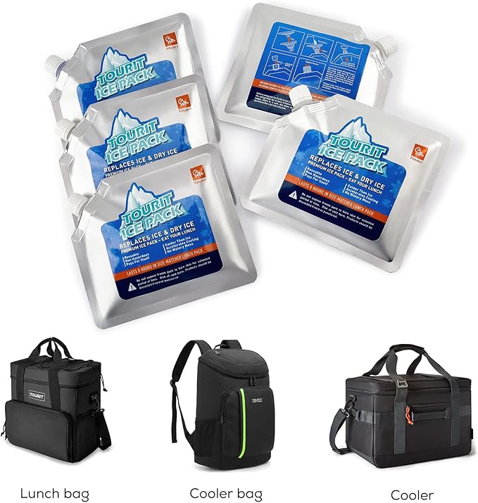TOURIT Reusable Ice Pack for Coolers Long Lasting Cooler Ice Packs for Cooler Bag Lunch Bags/Boxes, Cooler Backpacks, Freezer Packs for Coolers
