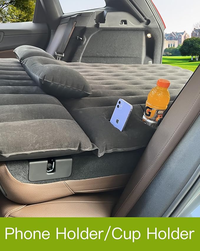 - Convenient Holders: Designed with built-in cup and phone holder, Canodoky car mattress allows you to keep drinks and your phone within reach while lying down. Enjoy hands-free convenience and prevent your phone from getting lost,PVC material covered-waterproof, two pillows for nice sleeping