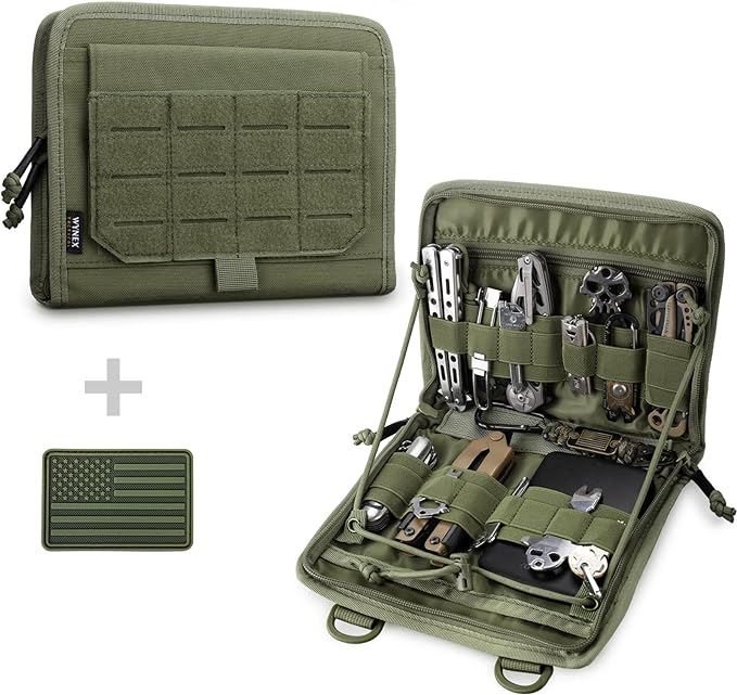 WYNEX Tactical Folding Admin Pouch, Molle Tool Bag of Laser-Cut Design, Utility Organizer EDC Medical Bag Modular Pouches Tactical Attachment Waist Pouch Include U.S Patch