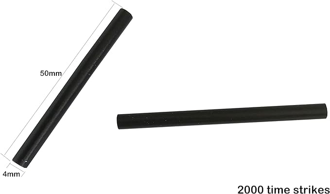 - The Free ferro rod size is 50 x 4 mm, the striker is made of durable carbon steel, it can be applied with magnesium rod in any weather condition, it will easily yield 2,000 or more strikes. Please use stiker more black paint on the Ferro Rod before using it. USING THE STRIKER, REMOVE THE BLACK PROTECT LAYER BEFROE USE!