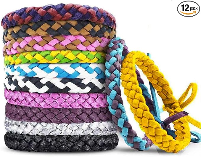 12 Pack Mosquito Repellent Bracelets, Individually Wrapped PU Leather Insect & Bug Repellent Wrist Bands for Kids & Adults Outdoor Camping Fishing Traveling