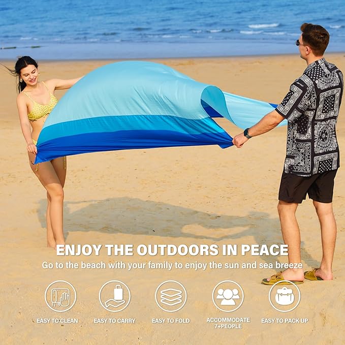 - Oversized Extra Large Beach Blanket :10'X 9'Size,2-8 Adults in total,Made by parachute fabric,More than 30% larger than other blankets,22.5 oz easy to carry!