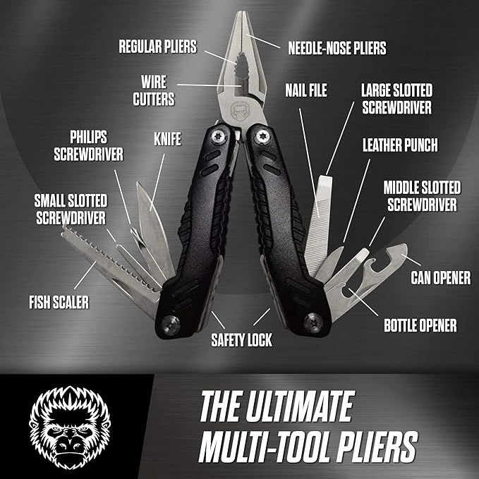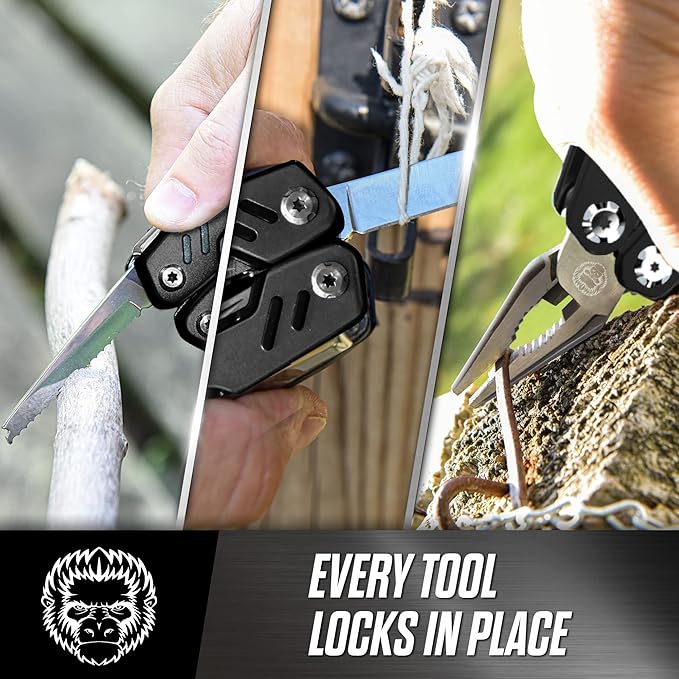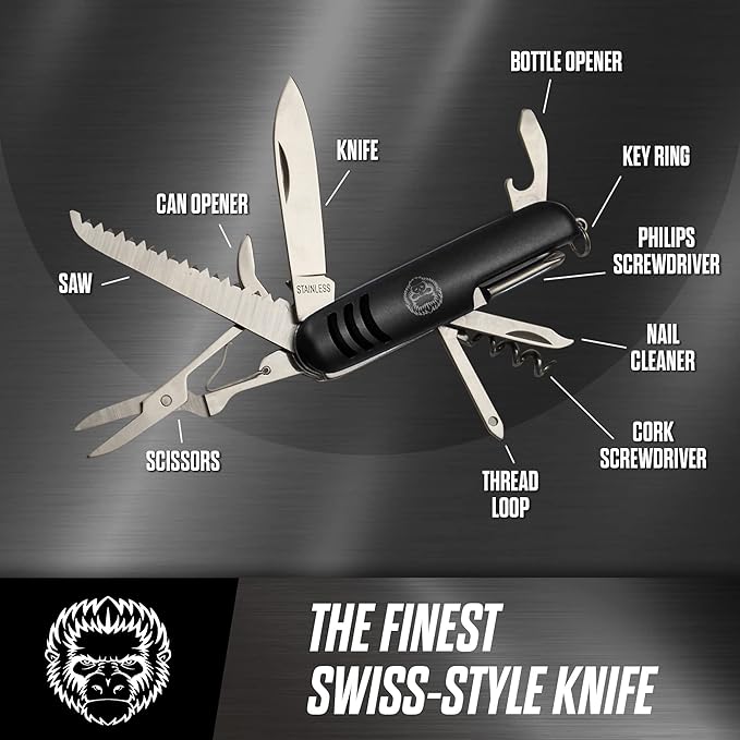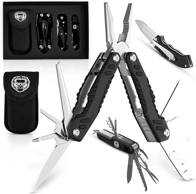 Holtzman's Gorilla Survival 3 Piece Pocket Multitool Utility Knife Gift Set (Black)