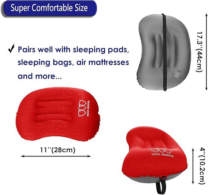 Gold Armour Inflatable Camping Pillow Backpacking Pillow Lightweight Travel Air Pillow Ultralight Ergonomic Pillow Portable for Airplanes with Neck & Lumbar Support (2 Pack) (Black & Red)
