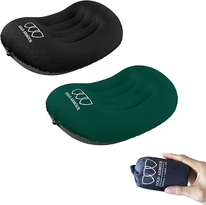 Gold Armour Inflatable Camping Pillow Backpacking Pillow Lightweight Travel Air Pillow Ultralight Ergonomic Pillow Portable for Airplanes with Neck & Lumbar Support (2 Pack) (Black & Turquoise)