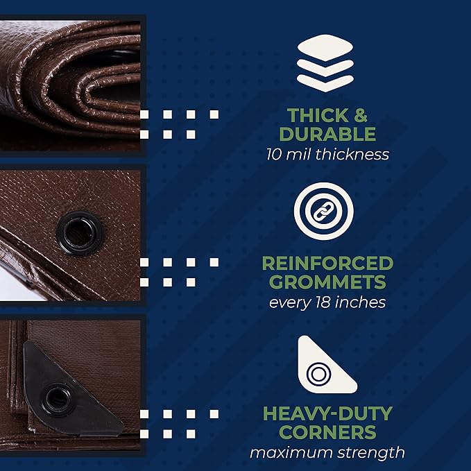 Tent Footprints Tarp Cover Brown/Silver Heavy Duty Thick Material Water Proof Tear Proof UV Resistant Reinforced Edges for Camping Boat Tent RV or Pool Cover 6x8