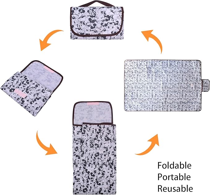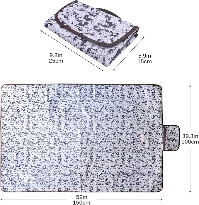FINEX Mickey Mouse and Minnie Mouse Picnic Blanket Mat for Camping Hiking Outdoor Concert Travel Large Foldable Portable Reusable Black & White