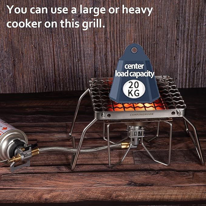 - This over-the-fire camping grill is compact but sturdy. This grill can support 20kg of weight.