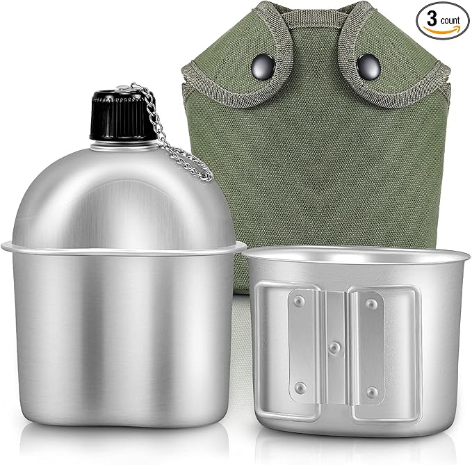 - What you will receive: there is 1 set of military canteen cookware in the package for you, including 1 piece of 1 qt aluminum alloy canteen, 0.5 qt cup and 1 piece of green canvas cover bag; The nice combination will help you a lot when you are camping, hiking, surviving and doing other outdoor adventures