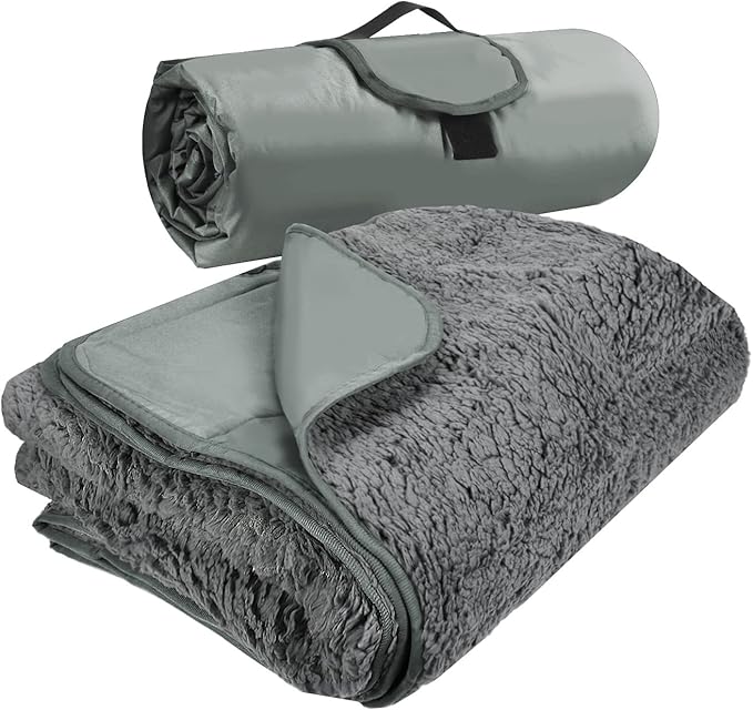 - PACKABLE & PORTABLE- It’s also easily foldable and packable, this compact waterproof throw blanket can be simply rolled up into a handled roll secured by a heavy-duty fastener, which is super easy to store.