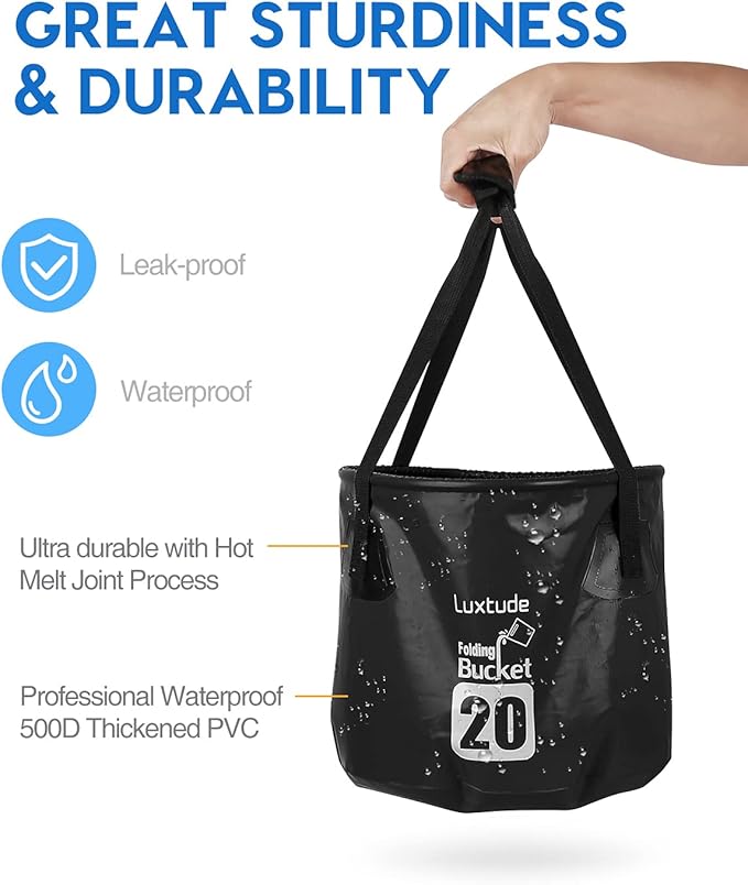 - ❤ LARGE CAPACITY: Capacity - 5 Gallon bucket (20L) can meet your outdoor daily use. Easy to use and dry quickly with using high-quality fabric