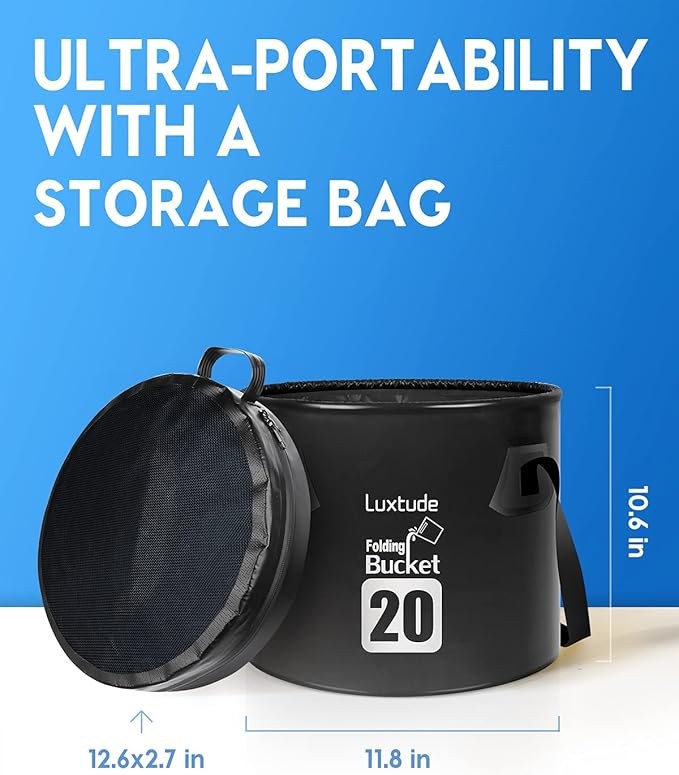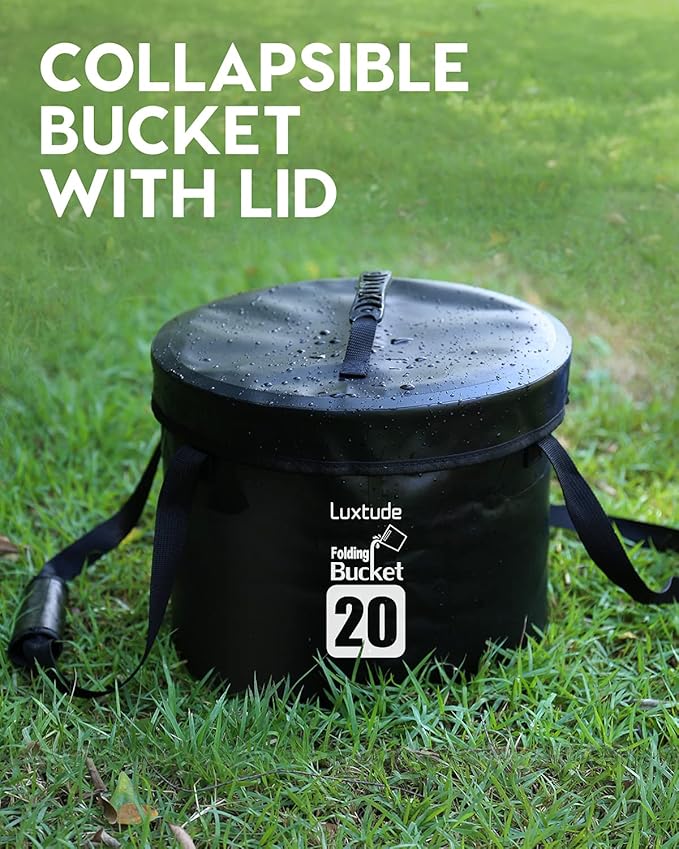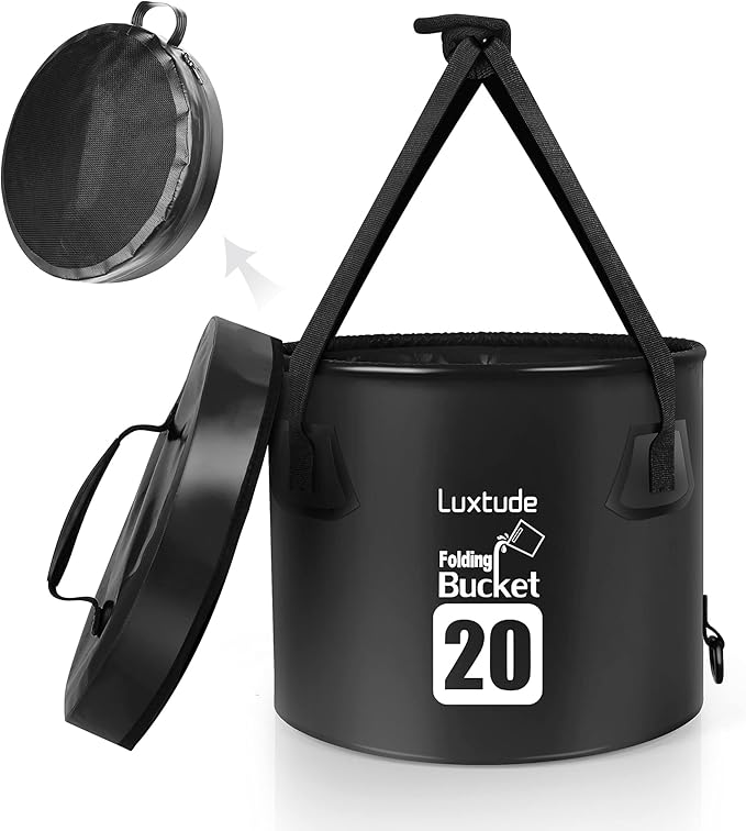 Luxtude Collapsible Bucket with Lid, 5 Gallon Bucket(20L), Camping Bucket, Food Grade Water Bucket, Folding Bucket for Camping, Hiking, Fishing, Car Washing Bucket
