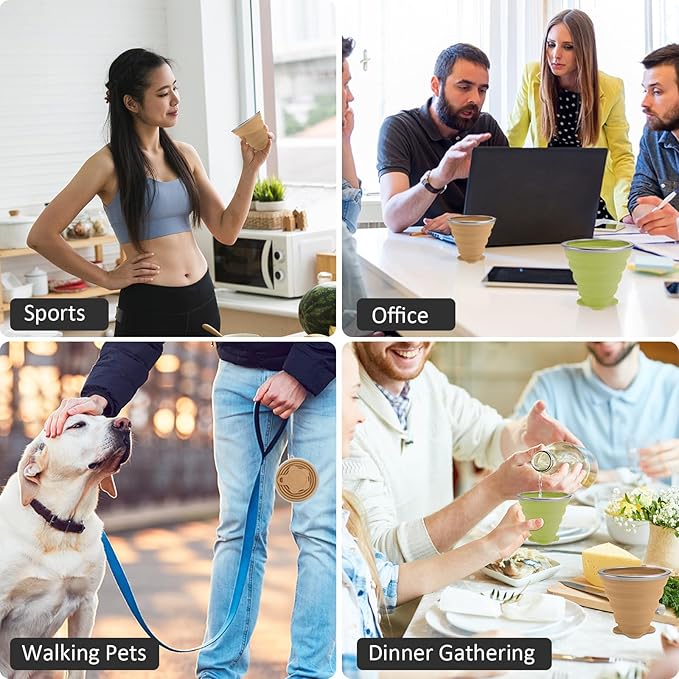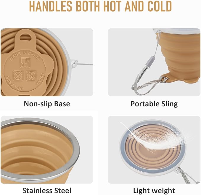 JBER Silicone Collapsible Travel Cup, Silicone Folding Camping Cup with Lids Expandable Drinking Cup for Outdoor Hiking Travel