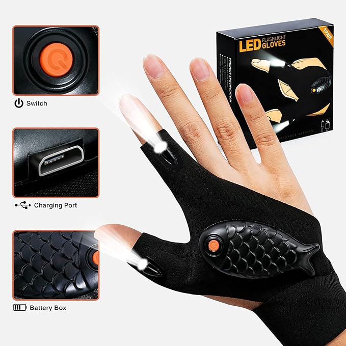 - Fully meet your needs--If you need to work at night for a long time and there are no lights! Our rechargeable flashlight gloves must be a good helper to you. Whether you are night fishing, running, camping, hiking, or walking the dog, it will provide you with bright lights!