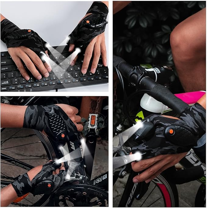 ThxToms Rechargeable LED Flashlight Gloves, Gifts for Men, Father's Day, Christmas, Birthday Gifts for Dad Boyfriend Husband Men Him, Cool Gadgets Tools for Repairing Fishing Camping, 1 Pair,Camo