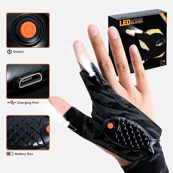 - Fully meet your needs--If you need to work at night for a long time and there are no lights! Our rechargeable flashlight gloves must be a good helper to you. Whether you are night fishing, running, camping, hiking, or walking the dog, it will provide you with bright lights!