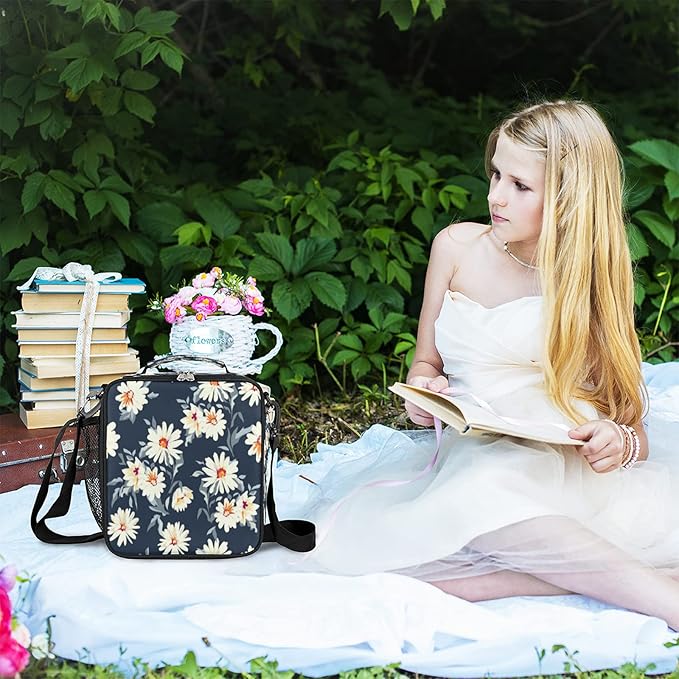 - ☑ LARGE CAPACITY: This daisy lunch bag is 10.5*3.5*9.5 Inch(24*8.9*26.7cm), making it convenient for transporting meals, snacks, hydration bottles and more.