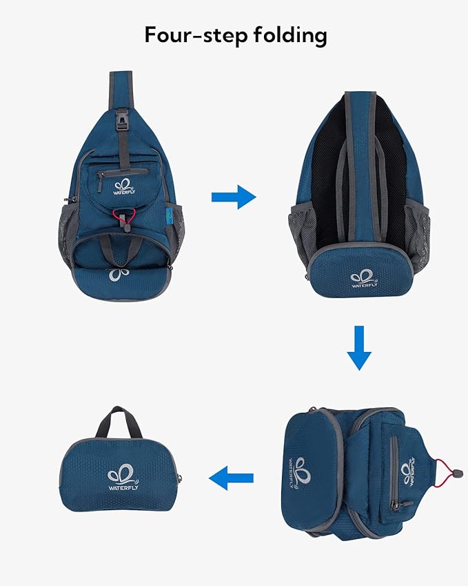 WATERFLY Packable Small Crossbody Sling Backpack Shoulder Chest Bag Daypack for Hiking Traveling