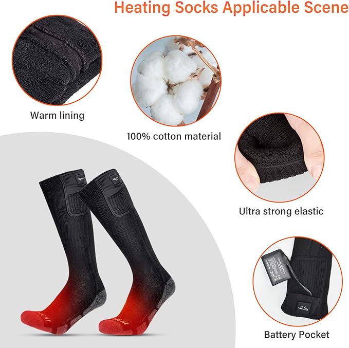 - 【Great Gift】Great for use in colder weather when outdoors at work or at sports events. Electric battery operated heating socks are a great gift to give during cold weather season and is the best give in the thermal warmer heated clothing category.Perfect for any age and gender, great as a present!