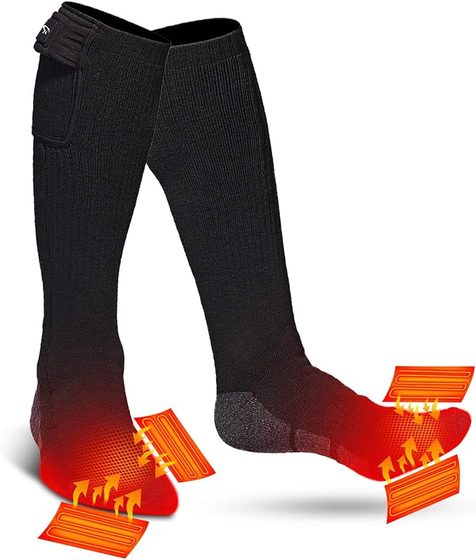 SNOW DEER Heated Socks,Upgraded 7.4V Rechargeable Battery Electric Socks for Men Women,Winter Cold Weather Warm Socks for Huting Fishing Camping Hiking Skiing Foot Warmer