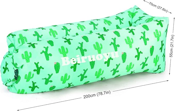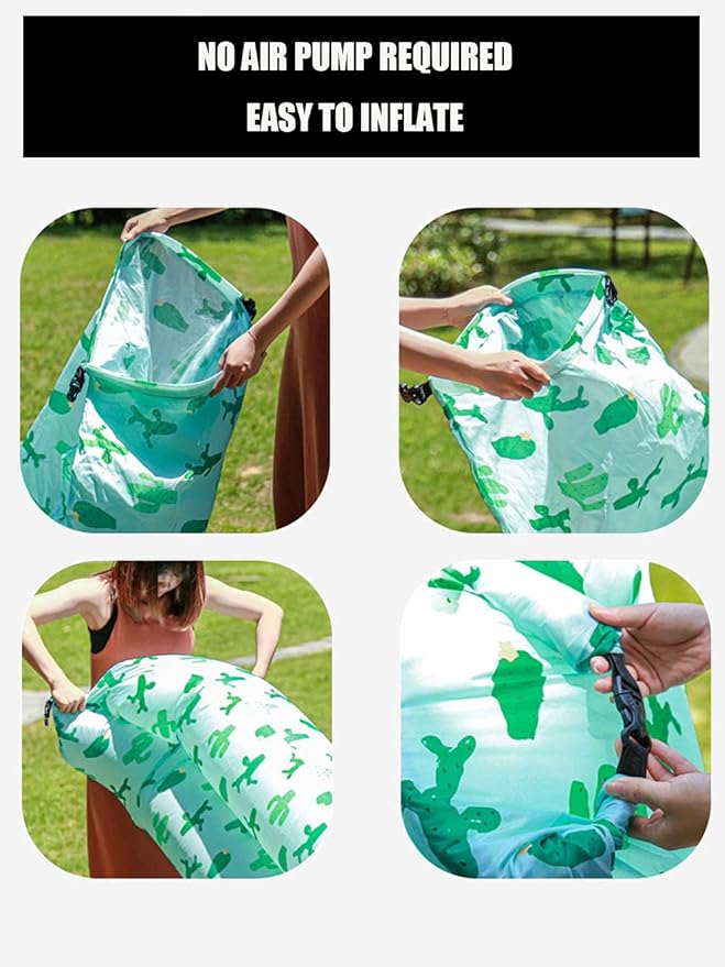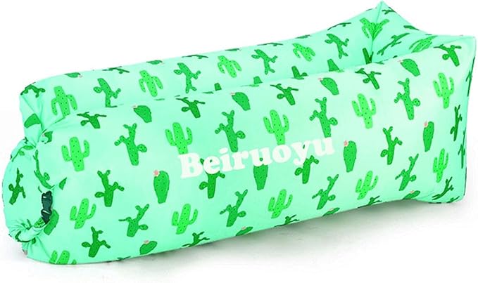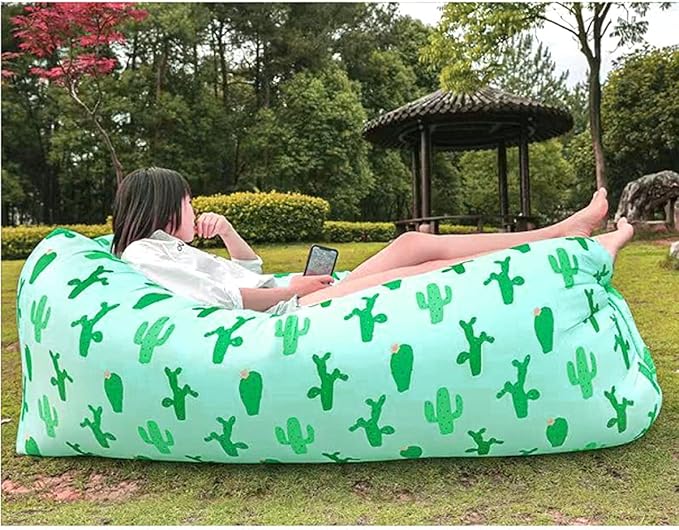 Inflatable Lounger Air Chair Sofa Bed Sleeping Bag Couch for Beach Camping Lake Garden ¡ (Green(Cactus))