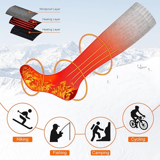 Heated Socks, Battery Rechargeable Electric Heating Socks, Thermal Warm Socks for Men Women Hiking Camping Winter Footwarmers
