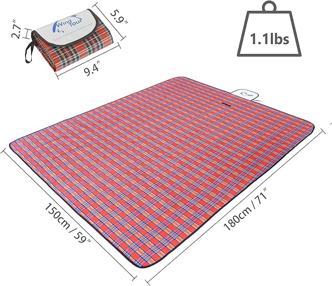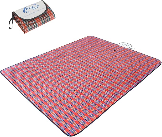 Wind Tour Family Outdoor Waterproof Durable Picnic Blankets with Carry Strap,Foldable 50×70.9 inch Sandproof Picnic Floor Mat for Kids Playground Camping Park Hiking Grass Travelling (1, Red)