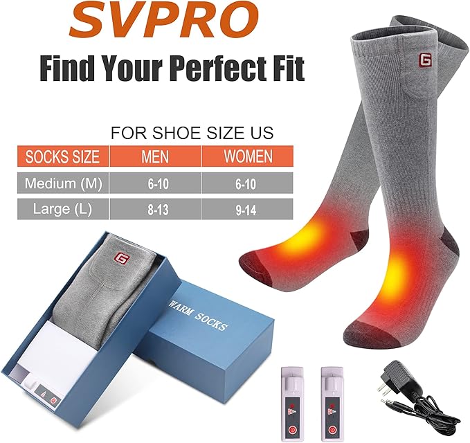 - 【Unisex Winter Warm Heated Socks for Outdoor】 Svpro heated socks rechargeable electric battery socks perfect for indoor and outdoor: winter climbing,hiking,motorcycling,skiing,mountaineering,snowboarding,riding,hunting,gardening.
