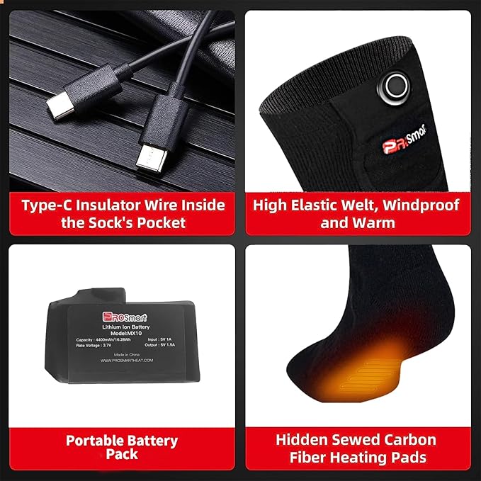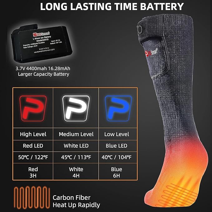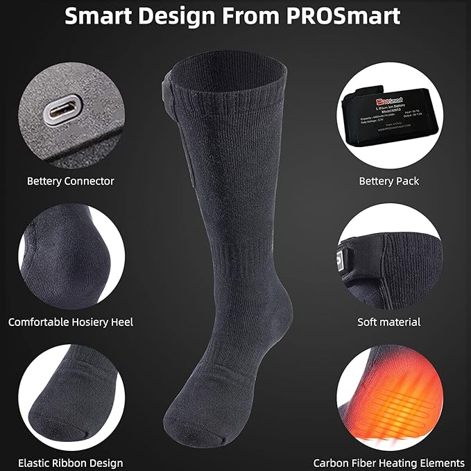 PROSmart Heated Socks Rechargeable Electric Sock - Battery Operated Thermal Warming Socks for Men & Women Suitable for Outdoor Hunting Cold Winter Skiing Camping