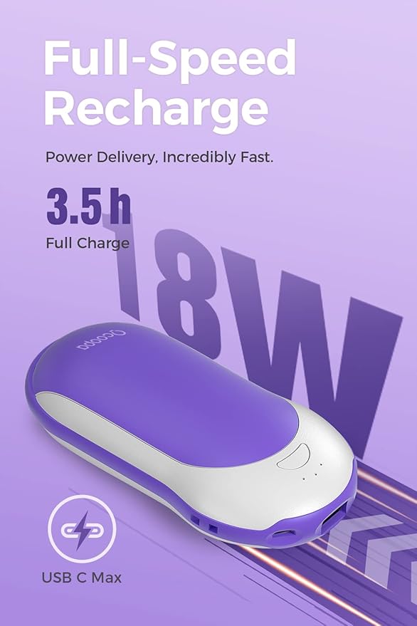 - What You Get: Perfect gift package includes Ocoopa H01-PD rechargeable hand warmer, USB-C to USB A cable, travel pouch, user manual and kind after-sales service.