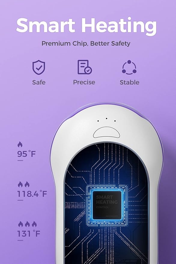 - Smart Safe Heating: Safety is our priority, we only use premium chipset to control the heat levels. From 95°F to 131°F, there are 3 levels of heat to choose from, by a simple button.