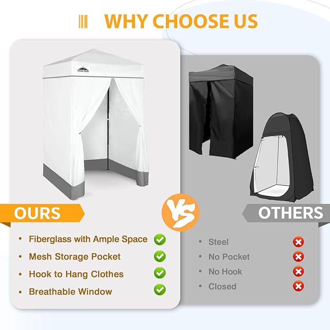 - INSTANT PRIVACY CHANGING ROOM: 4x4 changing tent for one or two people. Perfect as a changing room or sun cabana for outdoor activities: fashion show, photoshoot, camping, backyards, pool party or a showering tent, portable toilet shelter .