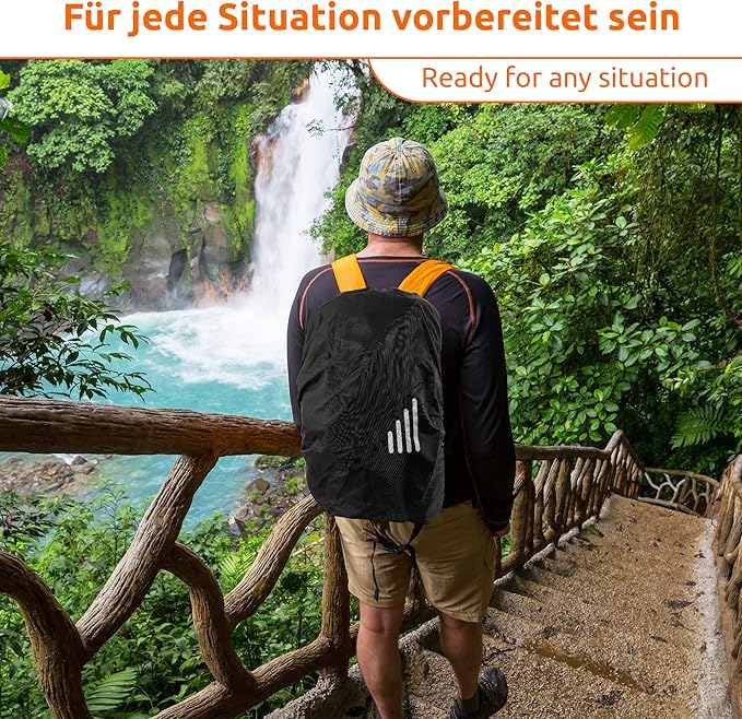 - EASY TO USE: The protective covers can be folded in a space-saving manner and always kept at hand. If there is a rain shower, they can be simply pulled over the backpack.