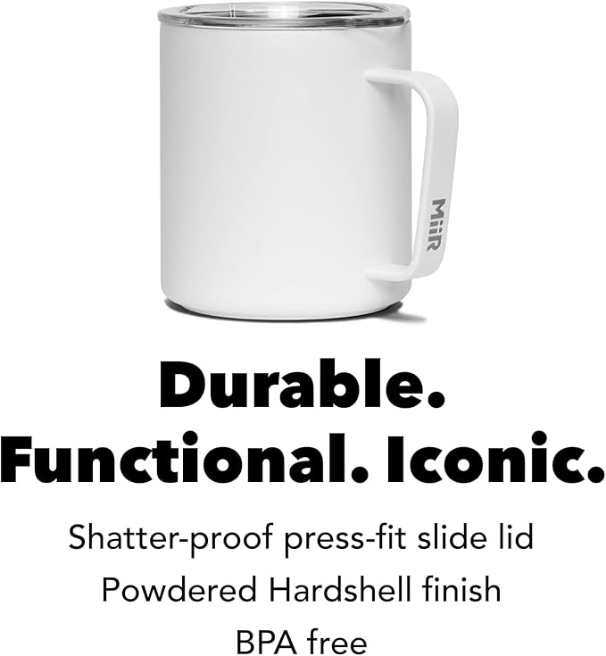MiiR, Camp Cup, Vacuum Insulated, Stainless Steel with Slide Lid, BPA Free, White, 12 Fluid Ounces