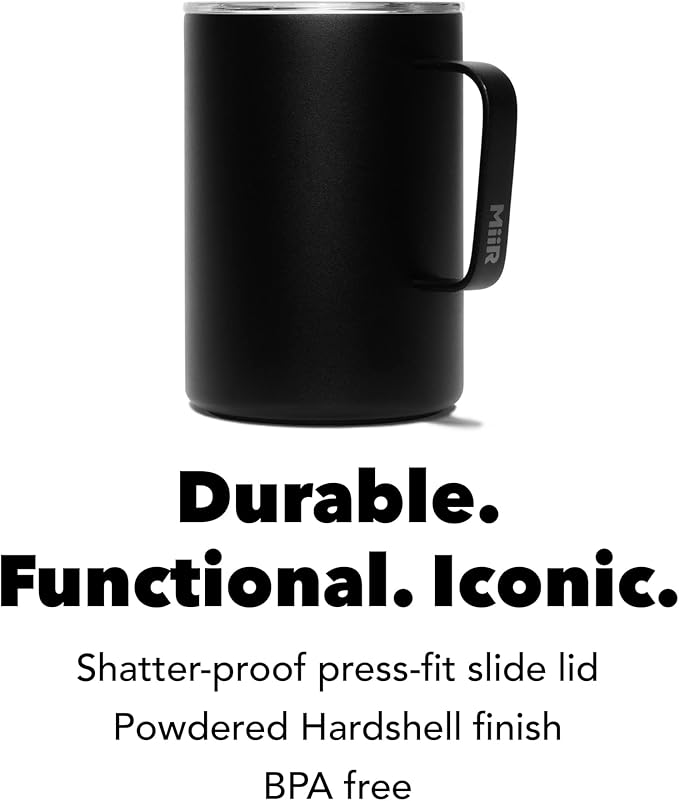 MiiR, Camp Cup, Vacuum Insulated, Stainless Steel with Slide Lid, BPA Free, Black, 16 Fluid Ounces
