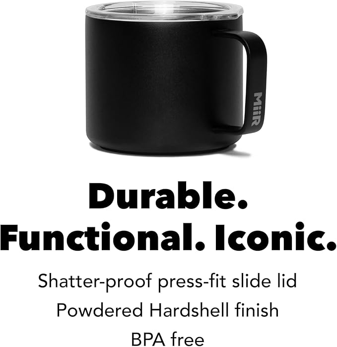 MiiR, Camp Cup, Vacuum Insulated, Stainless Steel with Slide Lid, BPA Free, Black, 8 Fluid Ounces