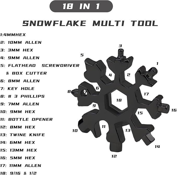 - ❆Christmas Creative Gift: Hex snowflake tool all in one tool is a great Christmas stocking gift for men or boys who are interested in adventure or family. 18 in 1 snowflake multi-tool is a awesome stocking filler! Christmas Snowflake Tool will bring surprises to the receiver!