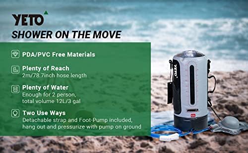 YETO Portable Camping Shower 12L Solar Camping Shower Bag with Foot Pump and Sprayer