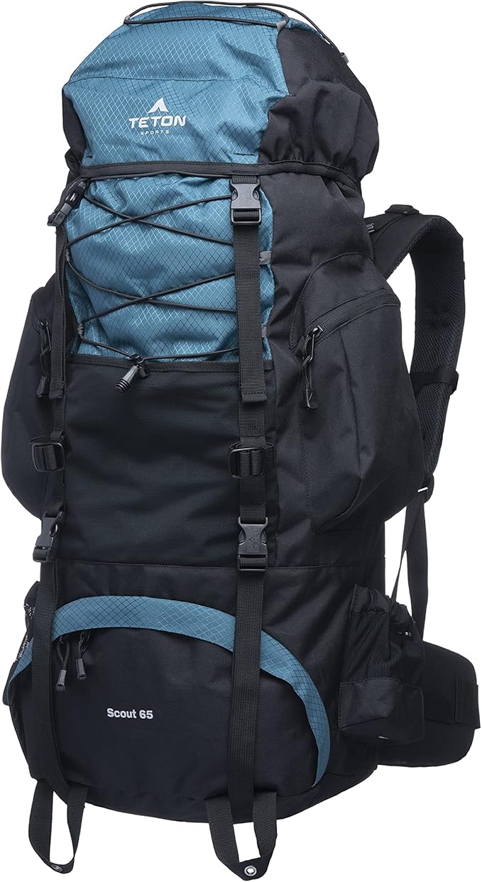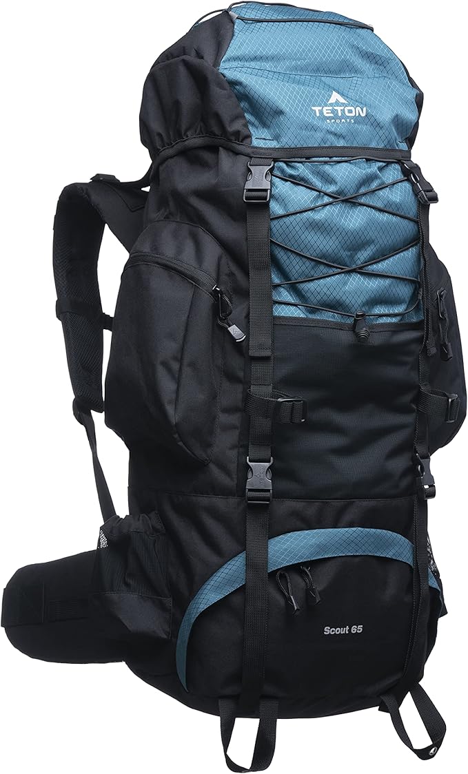 TETON 65L Scout Internal Frame Backpack for Hiking, Camping, Backpacking, Rain Cover Included