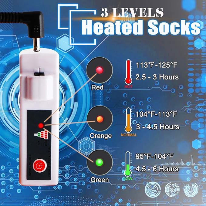- Material : Cotton Blend Rechargeable Heated Socks for Men Women